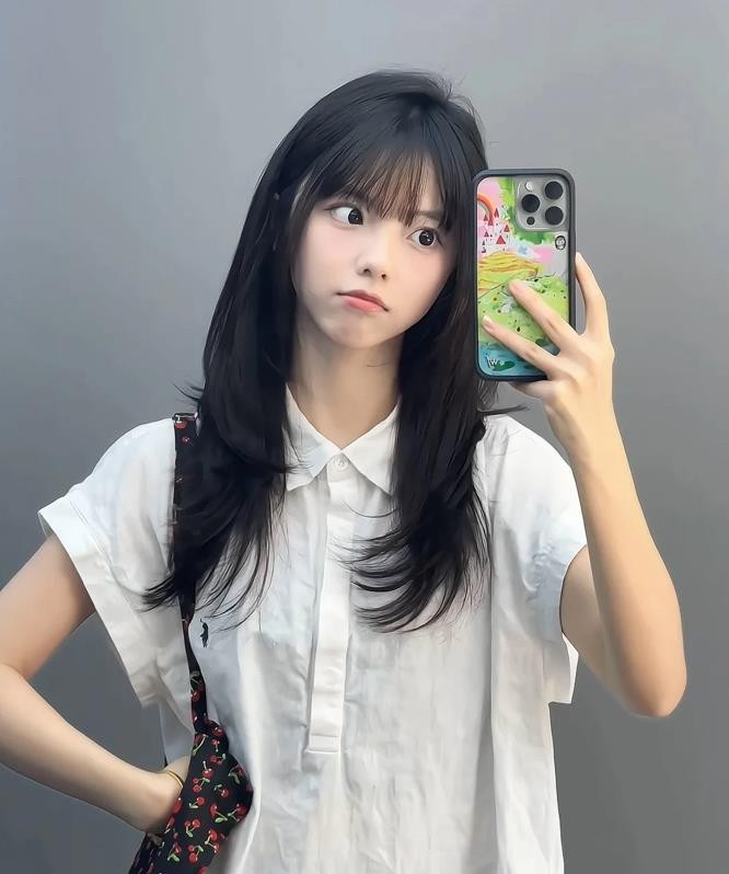 额前的刘海,可根据自己的脸型去修剪,中分、八字刘海,或是空气刘海都很好看。