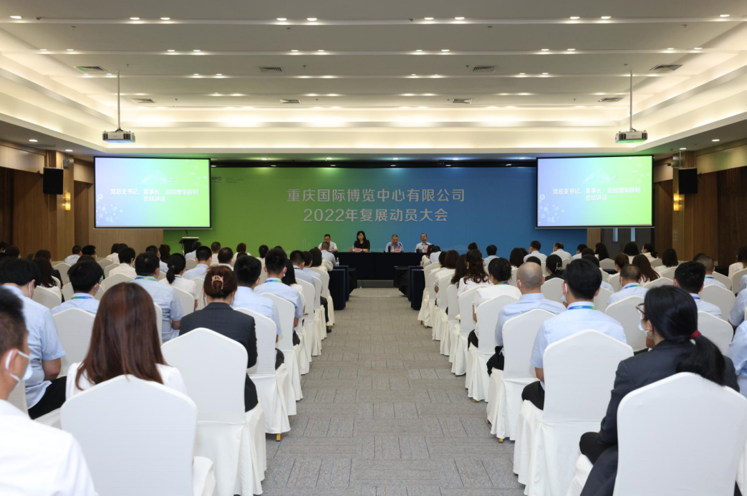 重庆国际博览中心有限公司全体领导和员工召开了2022年复展动员大会。