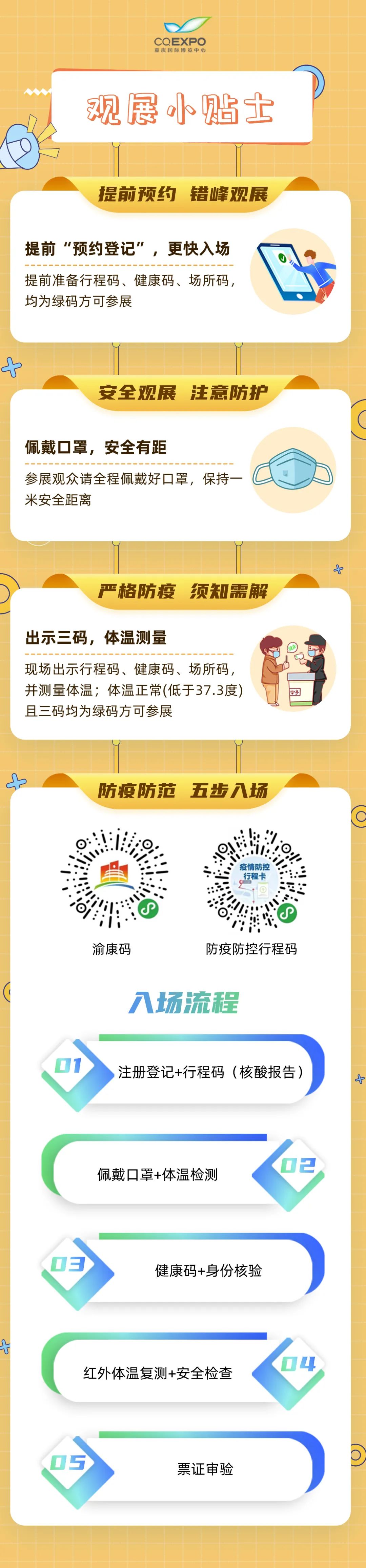 为了给展商和观众提供一个安全、健康、放心的参展观展环境,重庆国博中心打好防疫组合拳,严格进行疫情防控,多点发力牢牢筑起疫情防控的“安全网”和“防火墙”: