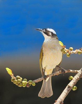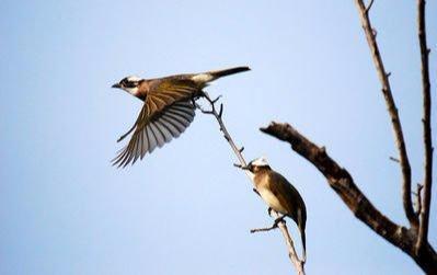 白头鹎(音:bēi),性活泼,结群于果树上活动。有时从栖处飞行捕食。