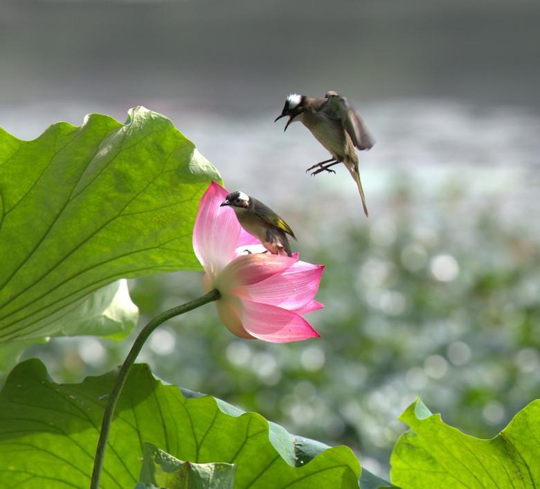 过不了多久,另一只白头翁飞过来,两只鸟一唱一和,那多半就是它们在互唱情歌了。