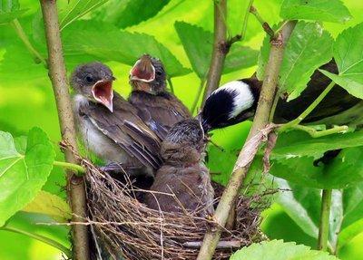幼鸟需要经过大约两个星期的孵化才能破壳而出,再经过大约两个星期的喂食,就可以出巢。