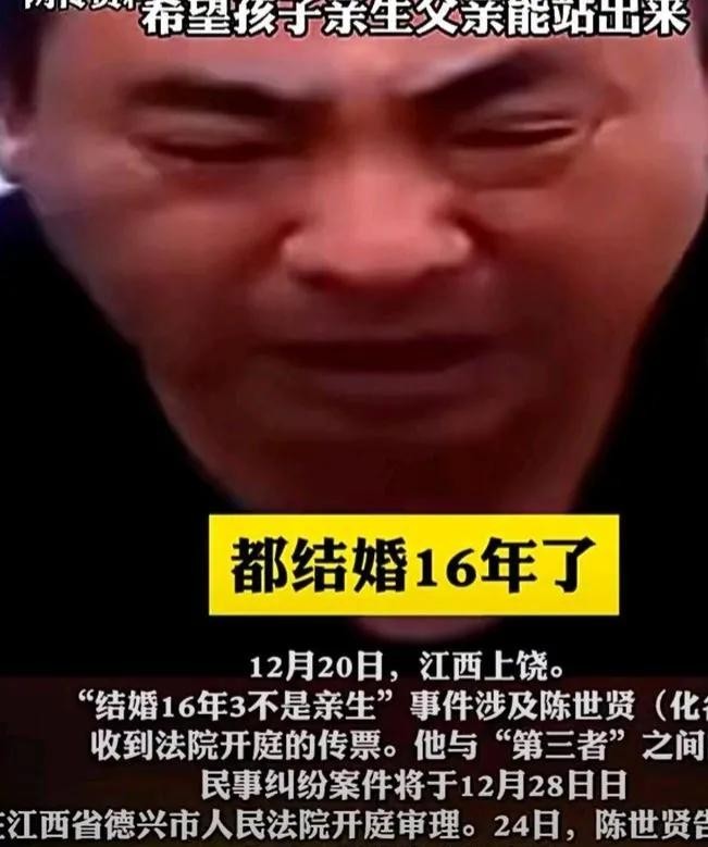 江西德兴市,经历了一场震惊的家庭争议。据报道,陈世贤(化名)在结婚16年后,发现自己的3个孩子都不是自己的亲生子女,引发了公众的关注和争议。目前,该案件将于2023年12月28日在江西省德兴市人民法院开庭审理。