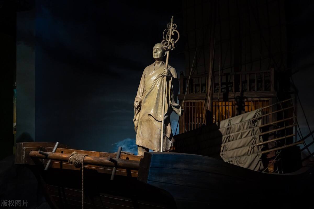 唐代高僧鉴真在唐玄宗天宝年间六次东渡,最终到达日本,
