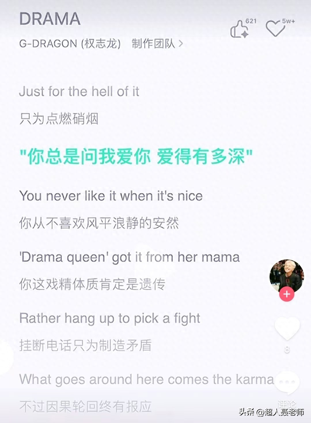 “你总是问我爱你,爱得有多深”——当权志龙略带韩式口音的中文唱腔穿透耳机时,整个中文互联网瞬间分裂成两大阵营。新歌《DRAMA》上线仅1小时便创下 **QQ音乐评论破10万+** 的纪录,而争议焦点竟集中在这句仅7秒的中文歌词上。