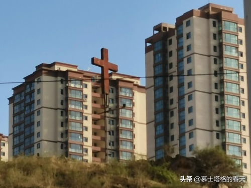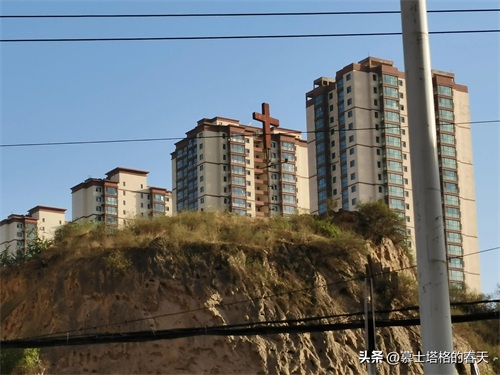 山崖上的十字架与伊清苑小区高层住宅