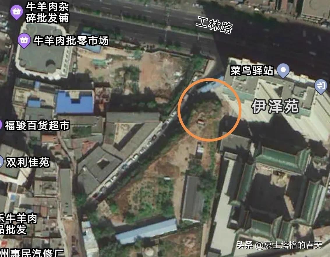 在工林路的北面,伊泽苑小区与工林路上清真寺之间的上山小路东侧的山崖上面竖着一个很大的十字架,与周边众多的清真寺形成强烈反差,十分地引人注目。