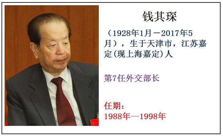 第7任外交部长:钱其琛,任期:1988年—1998年