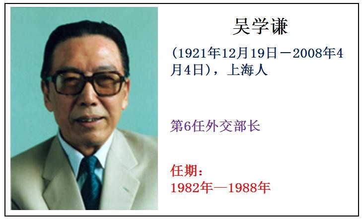 第6任外交部长:吴学谦,任期:1982年—1988年