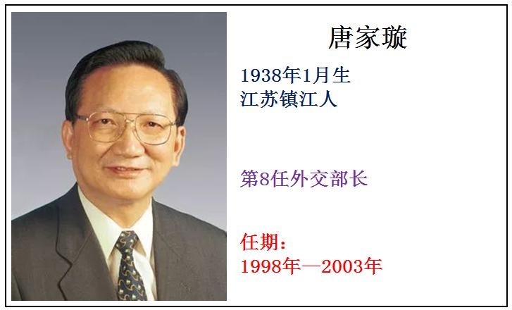 第8任外交部长:唐家璇,任期:1998年—2003年