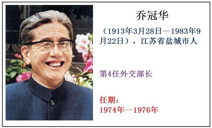 第4任外交部长:乔冠华,任期:1974年—1976年