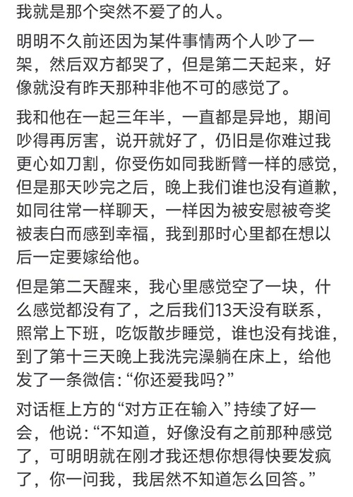那么,当爱情中的一方突然不再爱你,那种体验又是如何的呢?