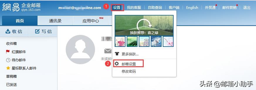 第二步:进入邮箱首页,点击邮箱地址边上的【设置】--【邮箱设置】进行下一步操作(如下图所示);