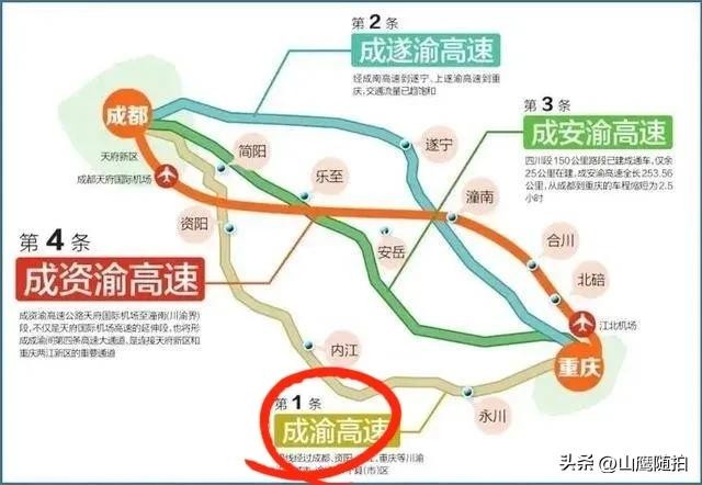 随着成渝经济的快速发展,为加快川渝经济的均衡发展,川渝地区在随后建成了三条成都至重庆的高速公路,也让这三条高速的沿线城市得到了更快速的发展。