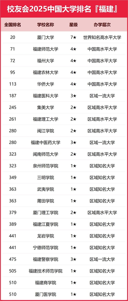 福建省内拥有众多的大学,虽然985、211名校的数量不多,但却也有不少各具特色的行业名校,这些高校的实力排名如何一直是考生家长关心的话题,2025年校友会的福建高校排名榜单已经发布,来看看在这份榜单上福建高校的表现如何(文末附完整榜单排名)。