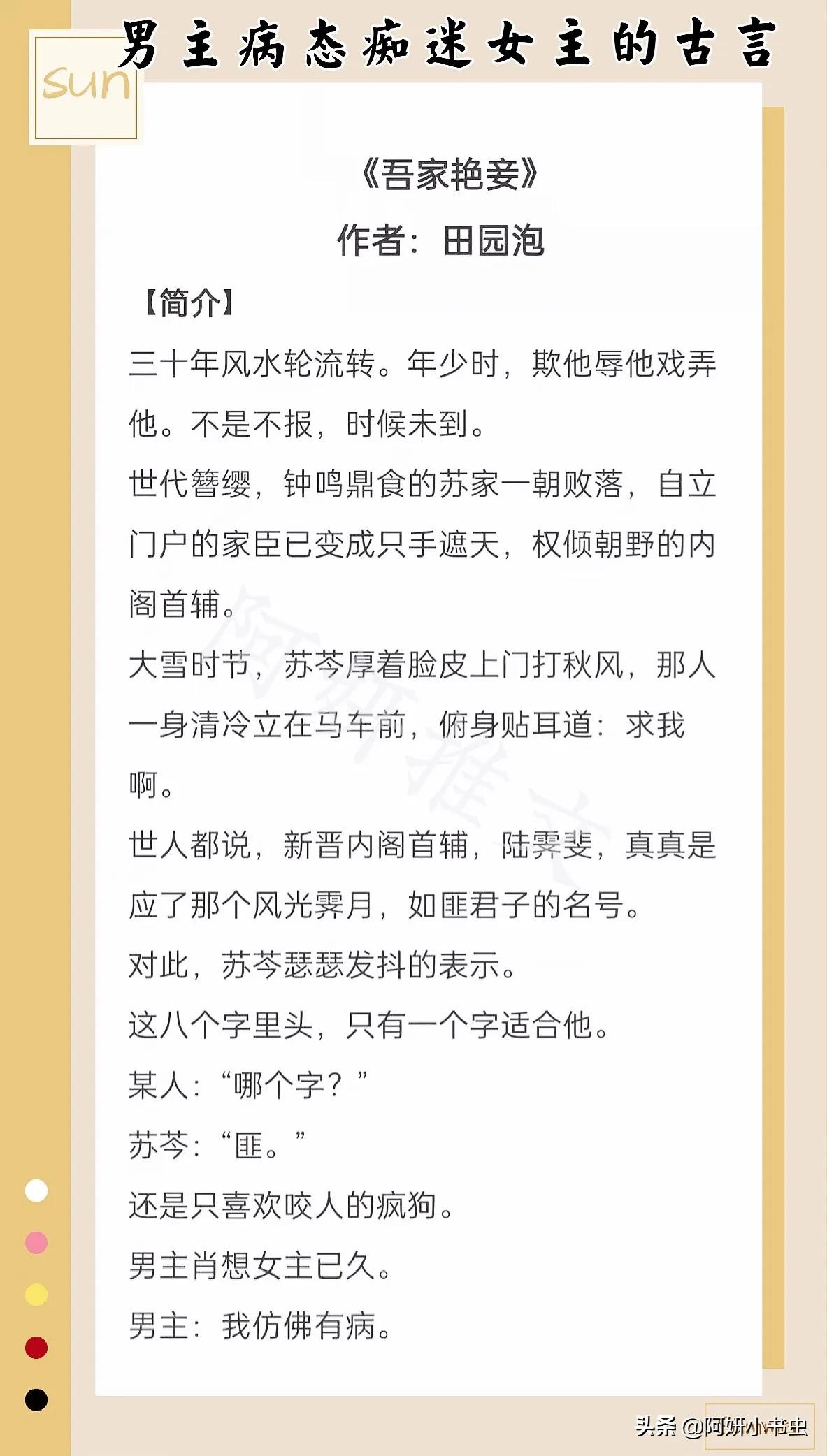 男主病态痴迷女主的古言:《吾家艳妾》权倾朝野疯狗x千姿媚态娇弱