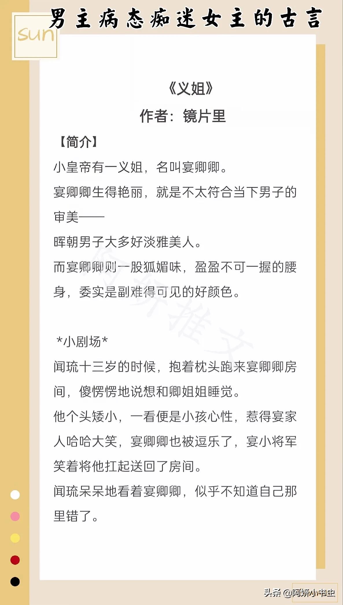今天推荐的是男主病态痴迷女主古言文!男主权倾朝野偏执阴狠!却对女主独宠,近似病态的宠爱于痴迷,谦谦君子只是表面,内里却是个扭曲本性了!文中描写细腻,构思巧妙,塑造人物有血有肉,男女主人设小编挺喜欢的,文中女主人设大胆突破,样貌与性格的反差夺人眼球!#小说##拯救书荒#