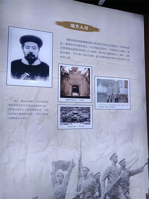 罗泉会议会址详细介绍了四川保路运动的由来、过程、因为清政府得到消息成都被围,四川这边要起义后,吓得给武汉督办、川汉铁路大臣端方,紧急驰援四川,造成武汉空虚,武昌起义爆发,接下来辛亥革命推倒了清政府。