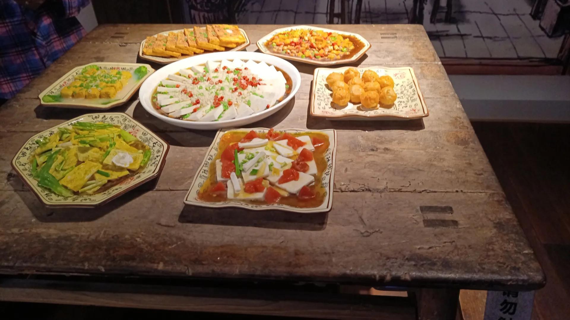 里面的豆腐宴太有食欲了,虽说是个假的,做得唯妙唯俏。