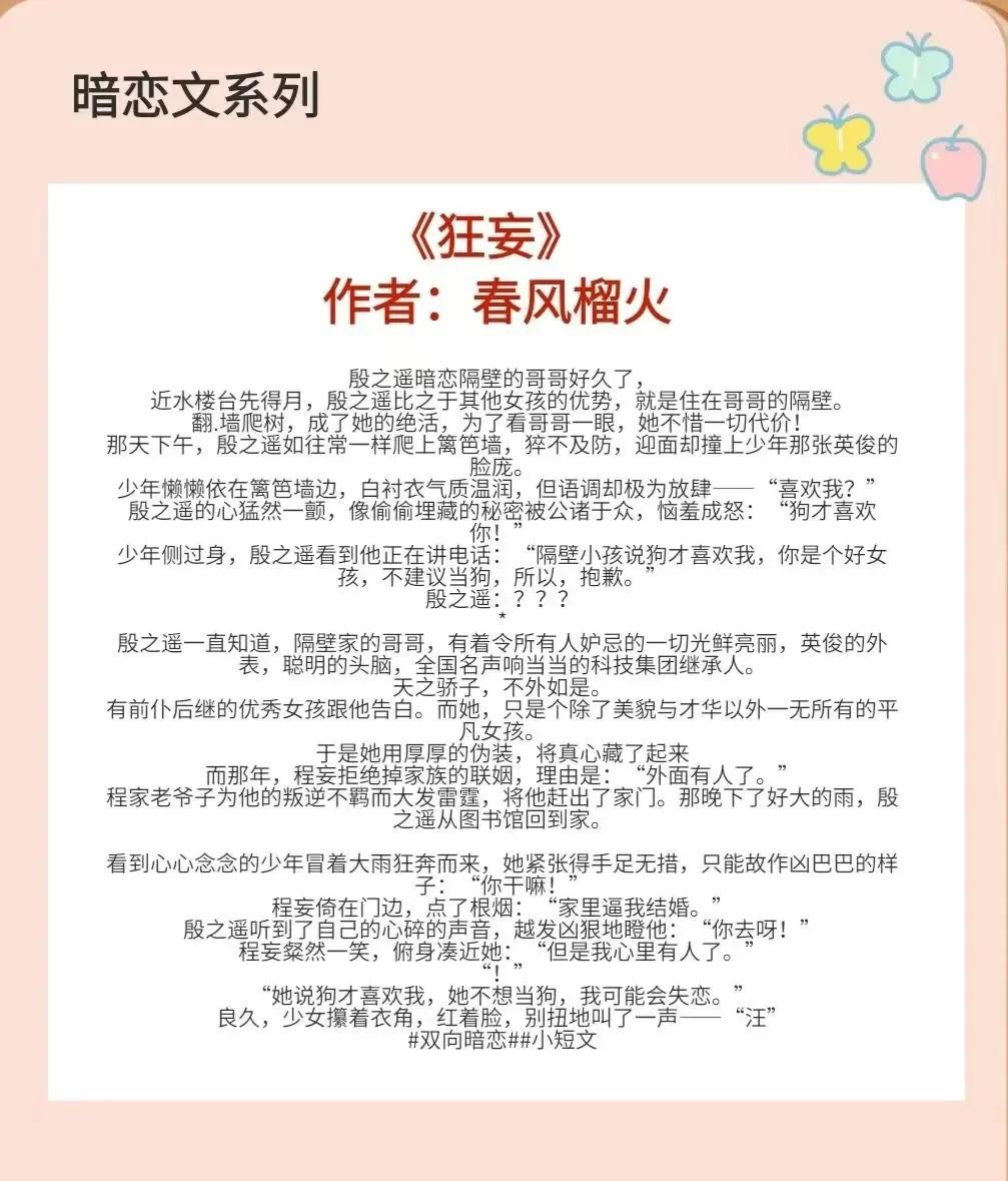 今天的分享就告一段落了,如果你意犹未尽,记得关注下小编,书荒不迷路,入坑不踩雷!#暗恋文#