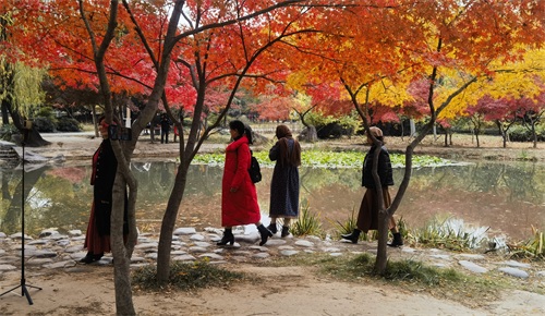 那满园的红叶如天边的彩霞,由淡至深,层层叠叠,织出一匹匹绚丽多姿的轻纱,把妩媚的隋唐染得五彩缤纷。几分艳丽,几分娇俏,如成熟女性所散发出的沉静的韵致,折叠着她们春的故事,夏的期望以及秋的梦幻。