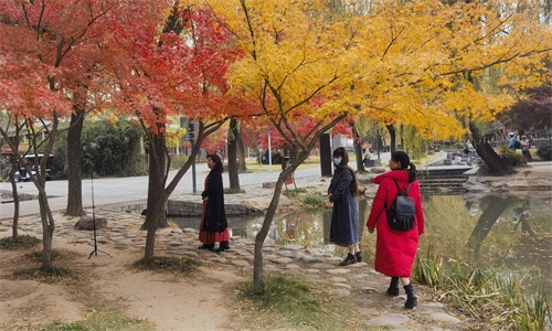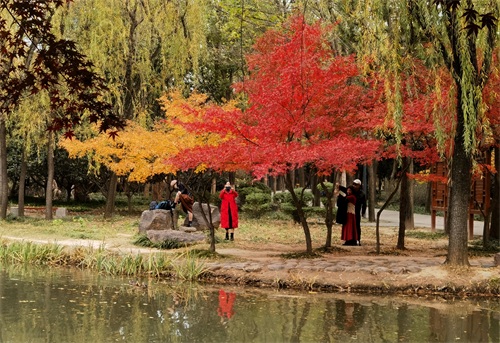 这几天,隋唐的红叶一片火红,我独自漫步在红色的霞光里。红叶被微风的吹动下,像跳动的火焰,片片秋叶想恣意地占据枝头。