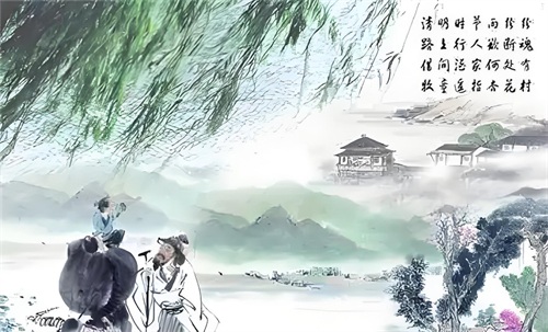 清明时节雨纷纷,路上行人欲断魂。借问酒家何处有?牧童遥指杏花村。