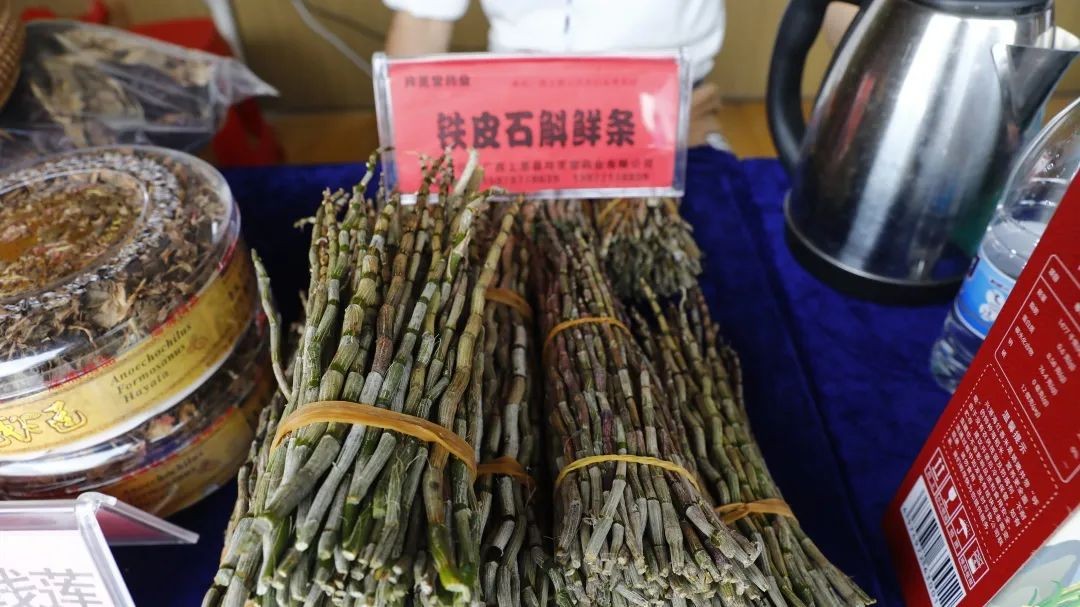 铁皮石斛又名黑节草,表面黄绿色或略带金黄色,有细纵皱纹,节明显,质坚实,易折断。主要成分是石斛多糖、石斛碱和总氨基酸等,能提高人体免疫能力、增强记忆力,适用于各类人群。