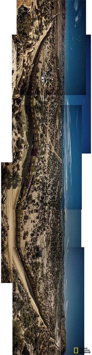 1982年,我第一次来到圣地亚哥的这段边境线,边境墙一直延伸到太平洋,当时边境墙只是一道单独的波纹钢栅栏,终点位于海滩的上方。直升机就在我头顶盘旋,不过我仍能径直进入墨西哥或者回到美国。在边境墙提华纳的一侧,有人在墙上喷了“无国界”几个字。如今,边境墙一直延伸到海洋中。