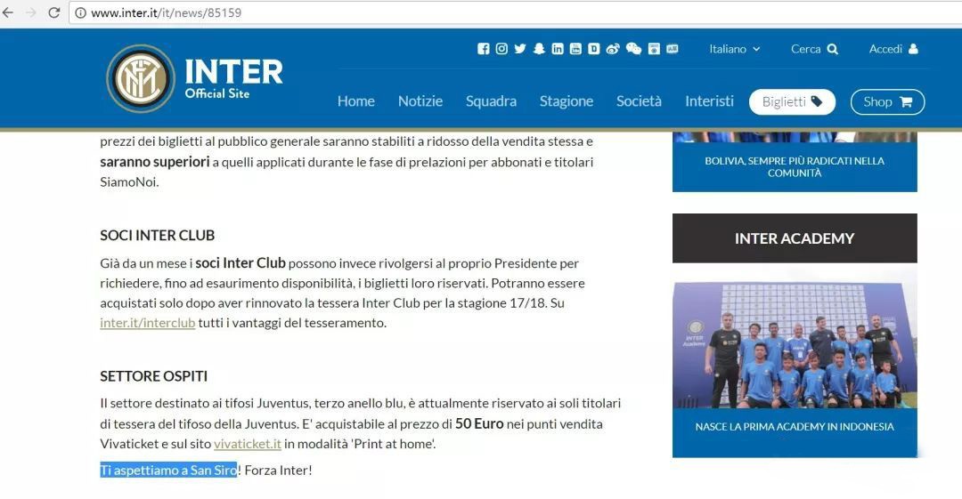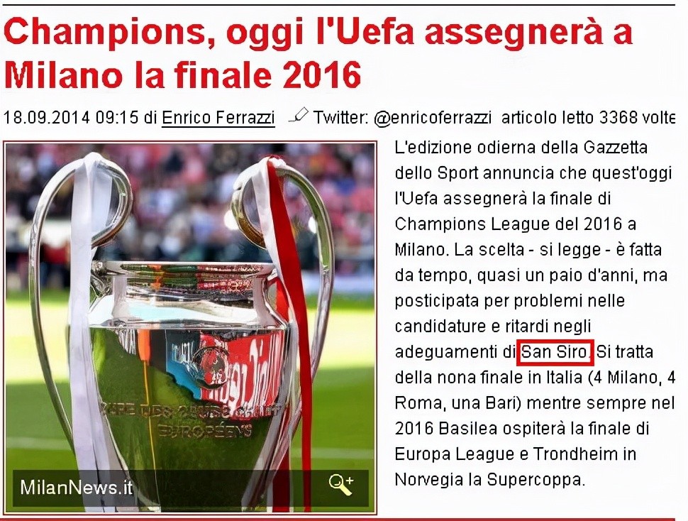所以在米兰这座城市,无论是哪队球迷,都会随机称呼这座球场,而不是米兰叫“圣西罗”,国米叫“梅阿查”,这是完全不存在的情况。反倒是国内球迷喜欢对此上纲上线。其实最简单的求证方法就是去米兰双雄的官网用球场名字检索文章,很快就有答案。
