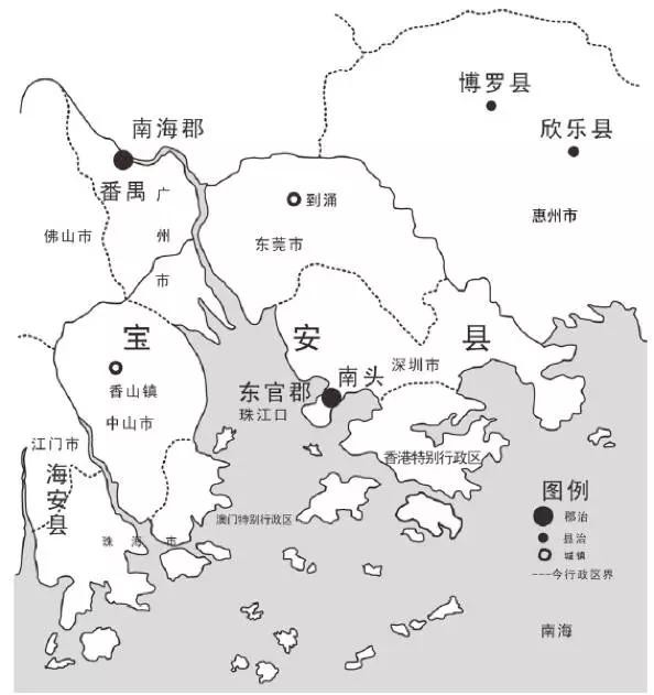 1842年8月29日清政府与英国签订的《南京条约》把面积78.10平方公里的香港岛割让给了英国。1860年10月24日签订的《中英北京条约》又把面积为11.1平方公里的南九龙半岛割让给了英国。1898年6月9日英国迫使清政府签订的《展拓香港界址专条》强行租借了九龙半岛界限街以北、深圳河以南的地区以及周围200多个大小岛屿。这三个不平等条约使原属新安县的3076平方公里土地中有1055.61平方公里脱离其管辖。