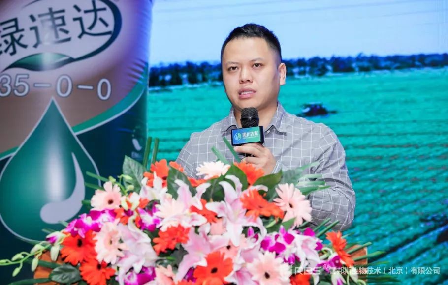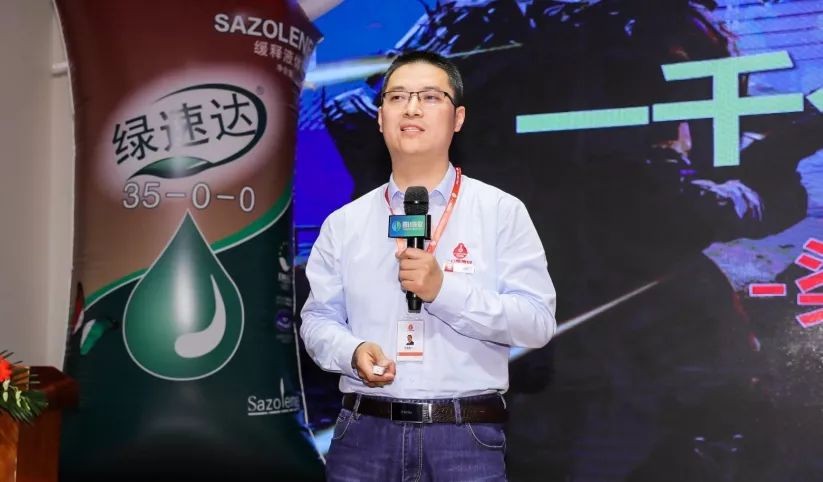 邵成峰在会上进一步介绍绿速达®的三个优势。一是高效利用,产品的利用率达80%以上,可以实现减量增效,在保障营养充分供给的同时避免污染和浪费;二是缓释长效,依托良好的缓释技术,绿速达®肥效长达45-60天,可以满足作物全程长期的氮元素供给,从而保障作物高产并提高抗病害的能力;三是施用方便,液体的形态可以通过喷洒进行施用,有效节省了人工人力,大面积地块还可采用无人机喷洒,更加方便高效。