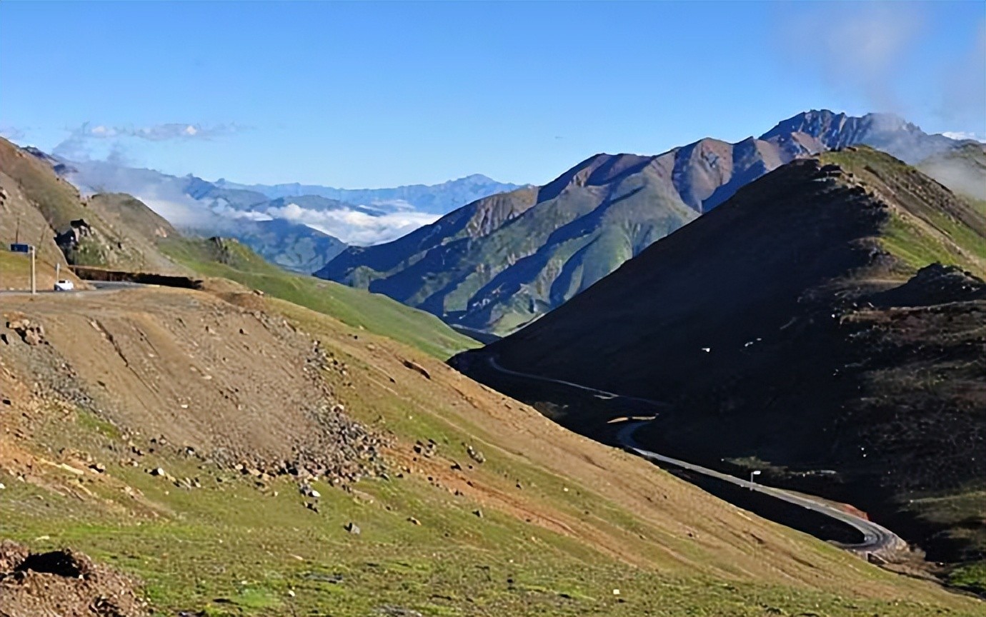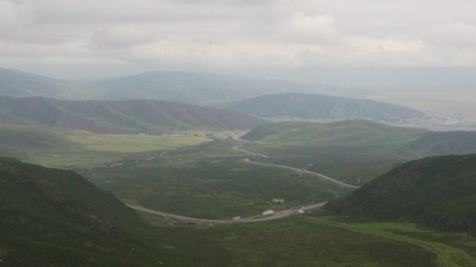 大巴车在原野上盘旋了好久,便开进大山,沿着绕山公路盘旋而上。导游说这山是日月山,山的最高处有个大冬树山垭口,在那停车休息,大家可以看看风景。