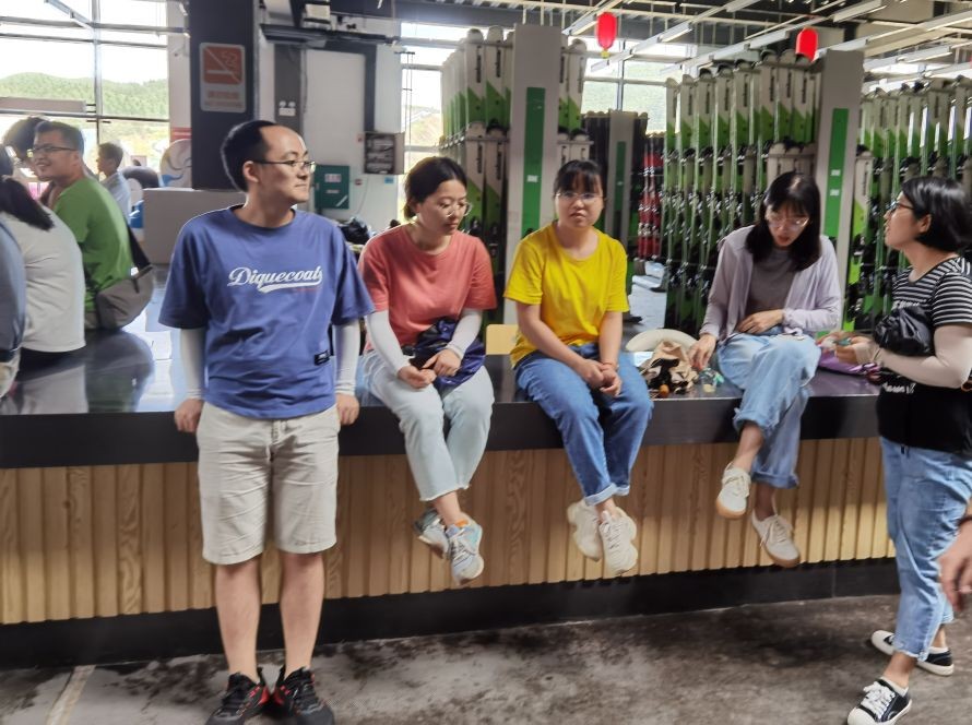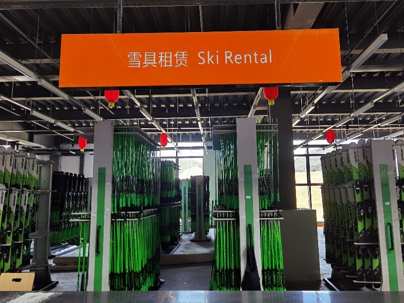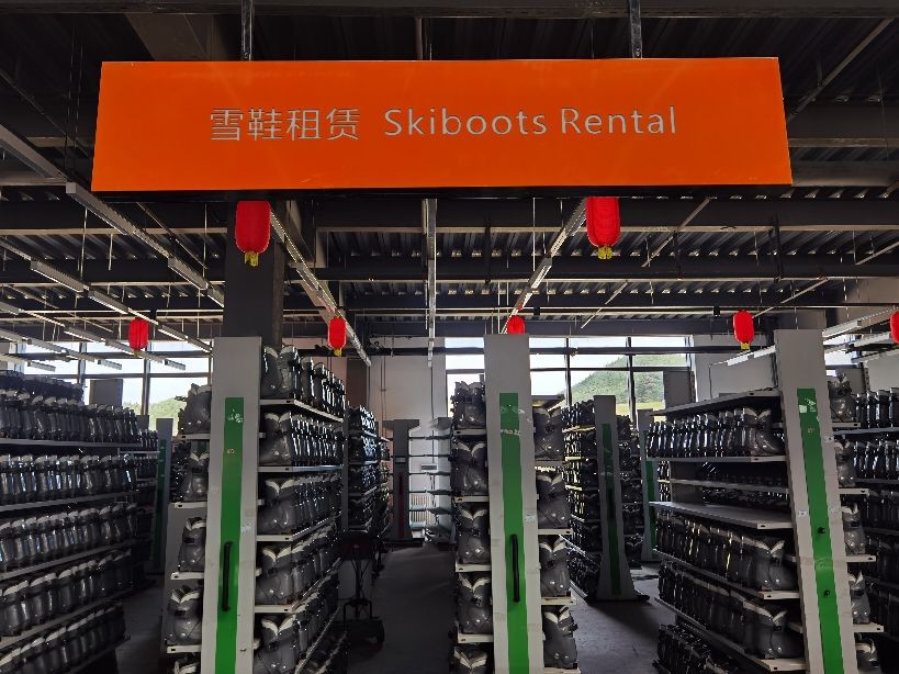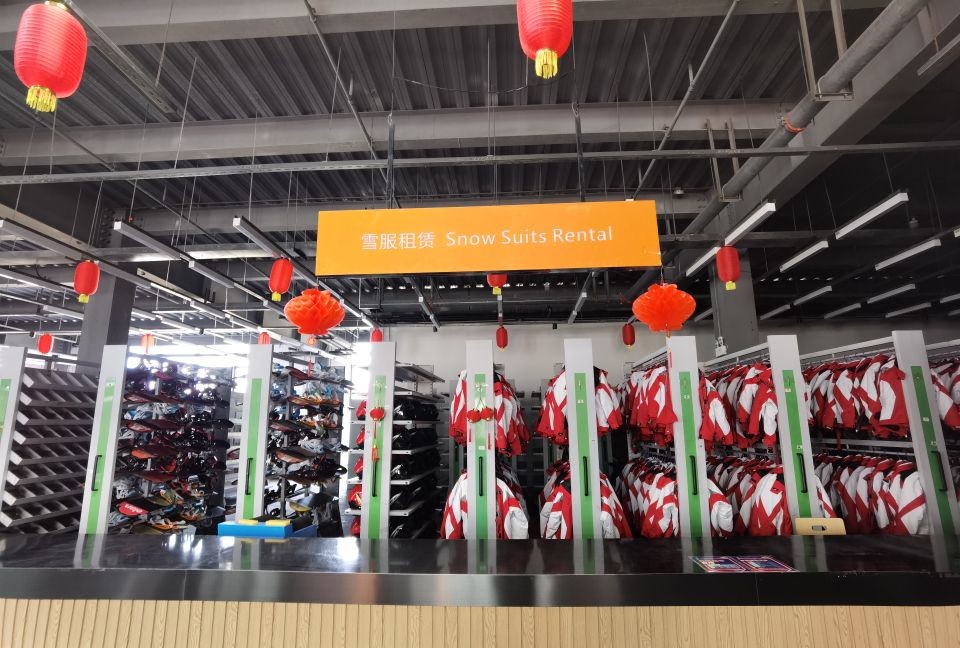 右边是租赁雪具、雪鞋、雪服等滑雪用具的区域。