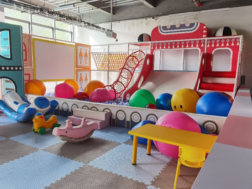 左转是一条大的通道,左边是寄存区,儿童玩乐区。