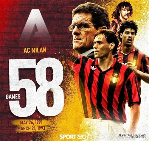 从1991年5月26日以0:0的比分与帕尔马握手言和开始,到1993年3月21日以0:1的比分被帕尔马击败。AC米兰的不败记录始于帕尔马,终于帕尔马。而58这个数字也足够神奇,要知道,AC米兰被帕尔马击败的那场比赛,唯一的进球就发生在比赛的第58分钟。