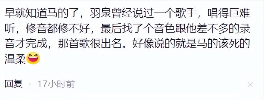 虽然没有指名道姓,但一度被网友认为是马天宇,毕竟《该死的温柔》就是胡海泉制作的,甚至还有网友表示难怪听到这首歌想到的不是马天宇的声音,而是电音。
