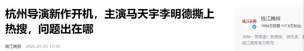 钱江晚报2025-01-05杭州导演新作开机,主演马天宇李明德撕上热搜,问题出在哪