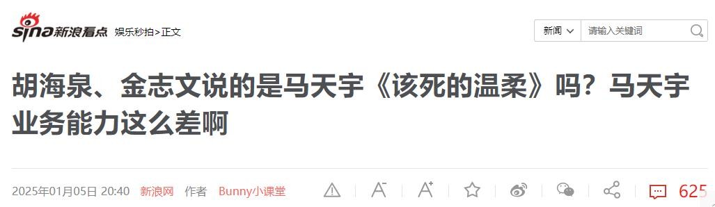 新浪看点2025-01-05胡海泉、金志文说的是马天宇《该死的温柔》吗?马天宇业务能力这么差啊