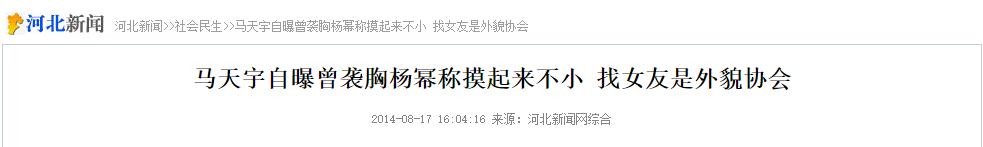 河北新闻2014-08-17马天宇自曝曾袭胸杨幂称摸起来不小 找女友是外貌协会
