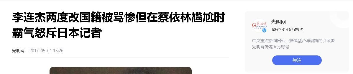 来源:光明网2017-05-01 15:26——李连杰两度更改国籍