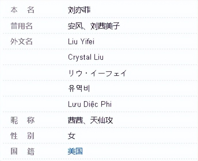 如歌手林俊杰,他是新加坡人,刘亦菲她是美国国籍。