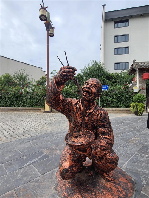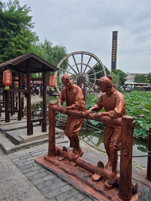 茯茶小镇集茯茶文化、茯茶商贸、茯茶品鉴、关中风情、文化和饮食于一体,庭院林立,雕塑成群,流水、小桥、荷塘,洋马车奔驰,博物馆威严。