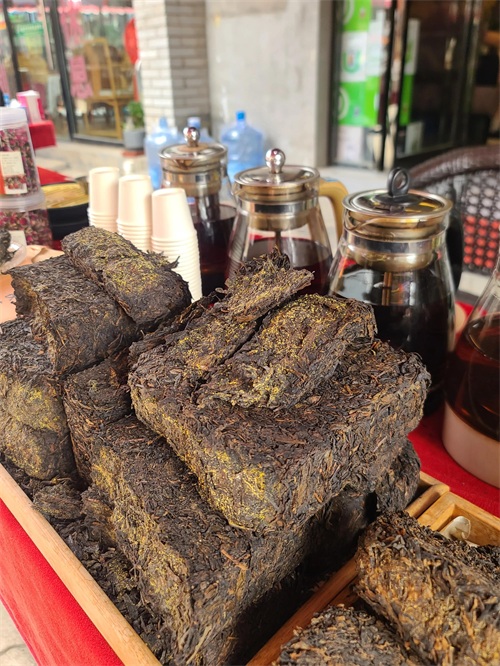 自家沿街展示试喝的茯砖(金花黄灿灿的)