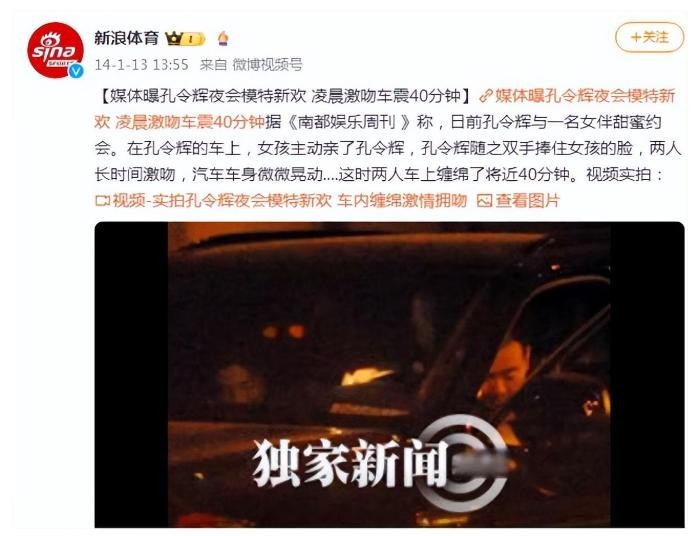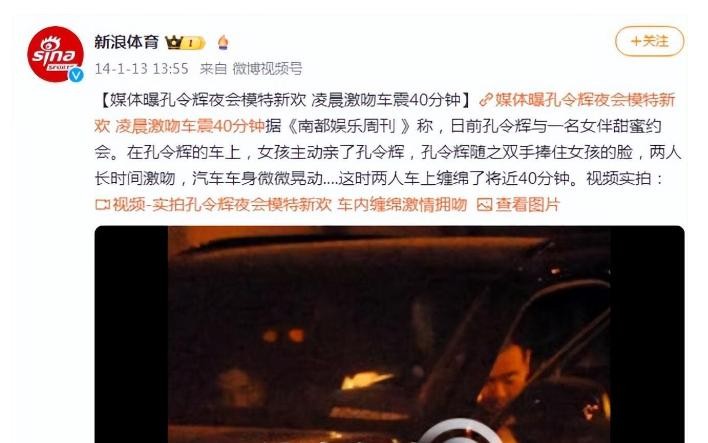 新浪体育:媒体曝光孔令辉也会模特新欢,凌晨激吻车震40分钟。