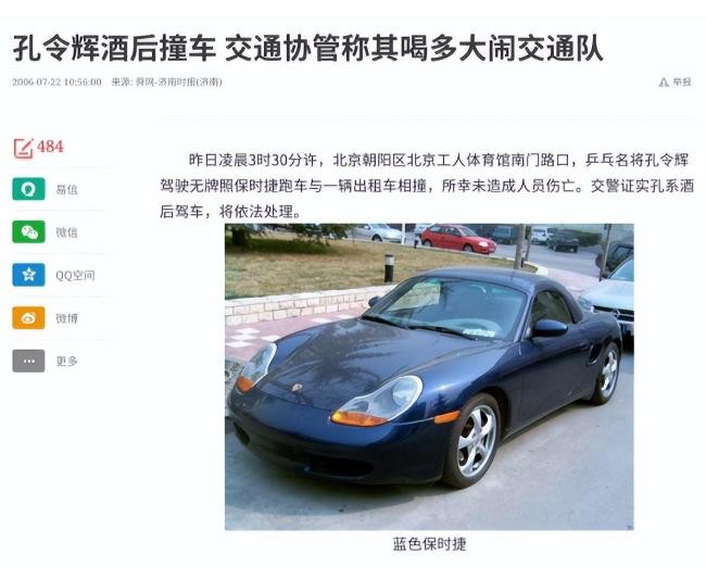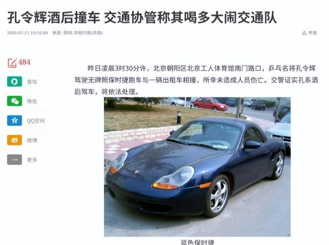也就是在这一年,孔令辉在北京驾驶一辆无牌的蓝色保时捷,与一位出租车司机相撞,由于酒驾的原因还被吊销了驾驶证。