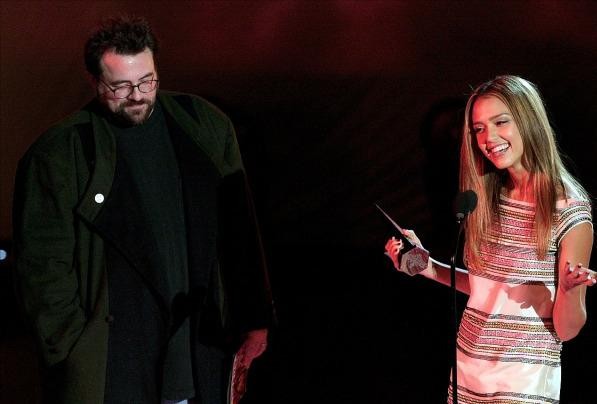 2001年1月7日,杰西卡亮相人民选择奖上,20岁的杰西卡身穿一款复古式的修身印花裙气质亮相。