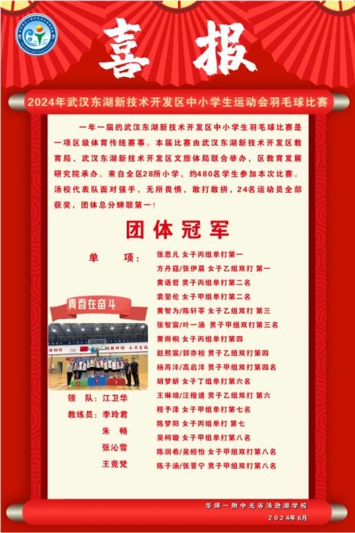 (本次华师一附中光谷汤逊湖学校羽毛球比赛喜报)