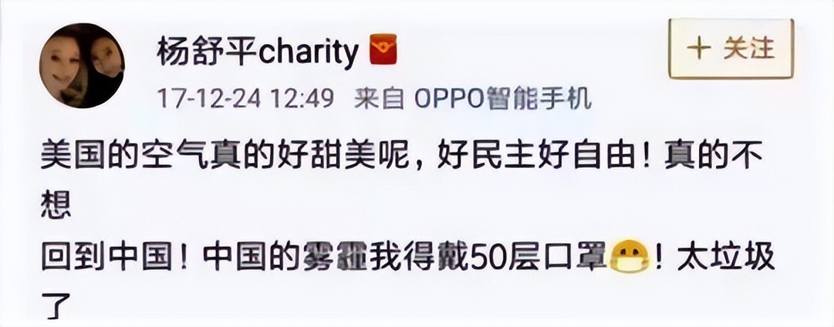 称赞美国空气香甜的杨舒平,被骂惨后霉运不断,回国下场凄惨无比