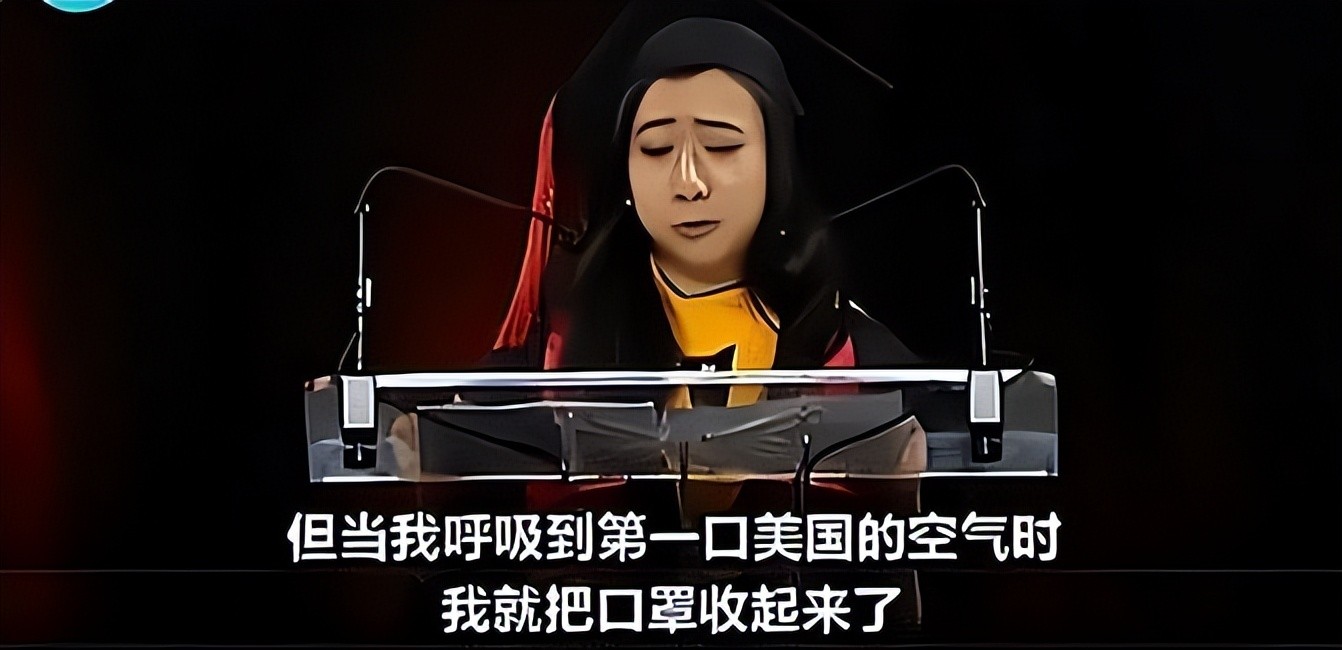 杨舒平一登上演讲台,就迫不及待地说,自己留学到达美国机场后,就感受到了这片土地上自由的气息。紧接着,她竟然毫无底线地诋毁自己的祖国。